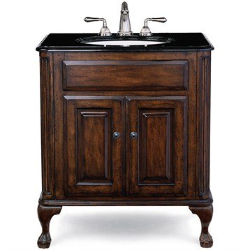 #This traditional chest is made of the finest select alder solids and cherry veneers, distressed and then finished in our old-world finish and completed with antique bronze hardware. The Classic features raised panel ends and hard-carved Queen Anne legs. The Estate features raised panel ends and ball-and-claw legs. Cole & Co. offers a coordinated selection of stone tops, faucet sets in the latest finishes, and a wide selection of sinks so you can create your own custom look. All tops are pre-cut for a 14" x 17" undermount sink (including the Cole & Co. Hampton sink in biscuit and white porcelain). Available in 25", 31" and 37" widths, as well as 5 stone top options and 2 sink choices to complement the finish.