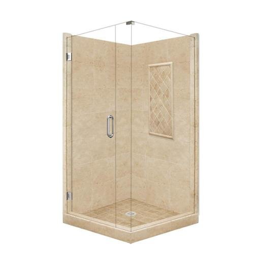 Supreme Front-and-Right Threshold Shower Enclosure Size: 48" L x 36" W x 86" H, Finish: Chrome, Drain / Door: Center / Left?P21-3117P-CH Size: 48" L x 36" W x 86" H, Finish: Chrome, Drain / Door: Center / Left Features: -Panel on left wall.-Great weekend project instead of weeks.-Easy to install and save thousands of dollars compared to installing a conventional stone shower.-Hand crafted sistine stone - a quartz and polymer blend with travertine look and feel.-Reinforced and leak-free shower pan and walls.-Non-porous, easy to clean, stain, mold and mildew resistant.-0.38'' Thick premium glass and hardware.-Enjoy a 5-star resort shower in your home. Includes: -Enclosure includes pan and walls. Dimensions: -12'' x 12'' Wall tiles with inlaid 4'' x 4'' diagonal pattern. Collection: -Supreme collection. Warranty: -Manufacturer provides 10 year limited warranty.