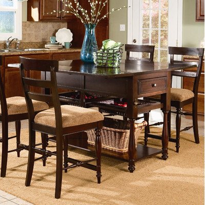 Gresham Park 5 Piece Drop Leaf Island Dining Set in Raisin?21860 / 21924 Features: -Table has two drawer, two sliding baskets and towel hardware holder.-Stool has upholstered seat. Includes: -Set includes drop leaf island table and four ladder back counter stools. Construction: -Poplar solids and cherry veneer construction. Color/Finish: -Raisin finish. Collection: -Gresham Park collection. Warranty: -Manufacturer provides one year warranty.